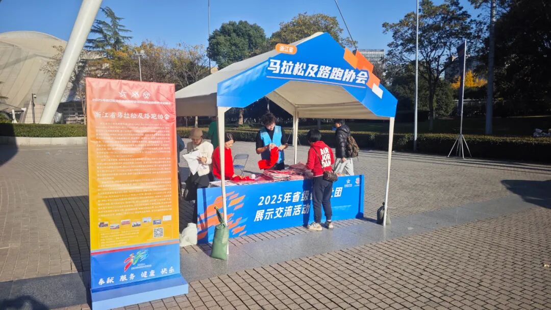 浙江省马拉松及路跑协会参与本次社团交流活动,并在展台设置了丰富有趣的互动活动,吸引了许多观众参与。